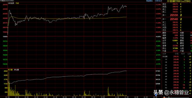 今日早間,不銹鋼期貨強勢增倉上漲。重返2萬大關后,漲勢未停。至上午收盤,主力合約漲690元至20550元/噸,漲幅3.47%;滬鎳主力合約漲3710元至210130元/噸,漲幅1.8%。