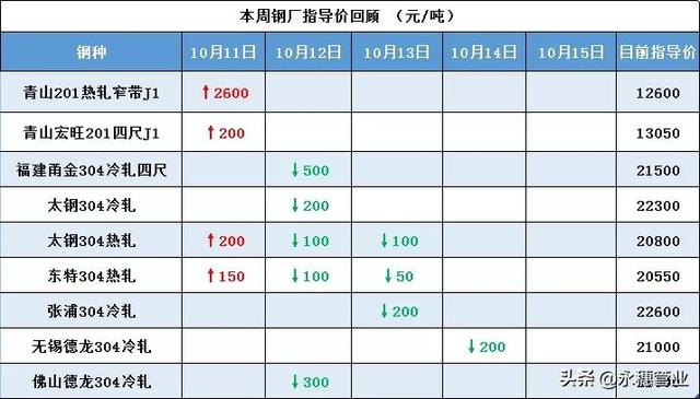 最主要原因是,青山大哥10月份的采購價格報至9995元,遠低于節后12000的市場報價,二者間近2000的價差!讓業內信心受到打擊,近日高碳鉻鐵價格下滑至11500元/噸附近。青山鋼廠新一輪304廢不銹鋼采購價報13500元/噸,較10月12日下調100元/噸,其他原料價位維持高位。