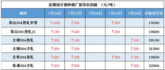 截稿前,304冷軋,大廠資源報21400-21800元/噸,民營資源報20700-21000元/噸;304熱軋民營資源報19700-20650元/噸。